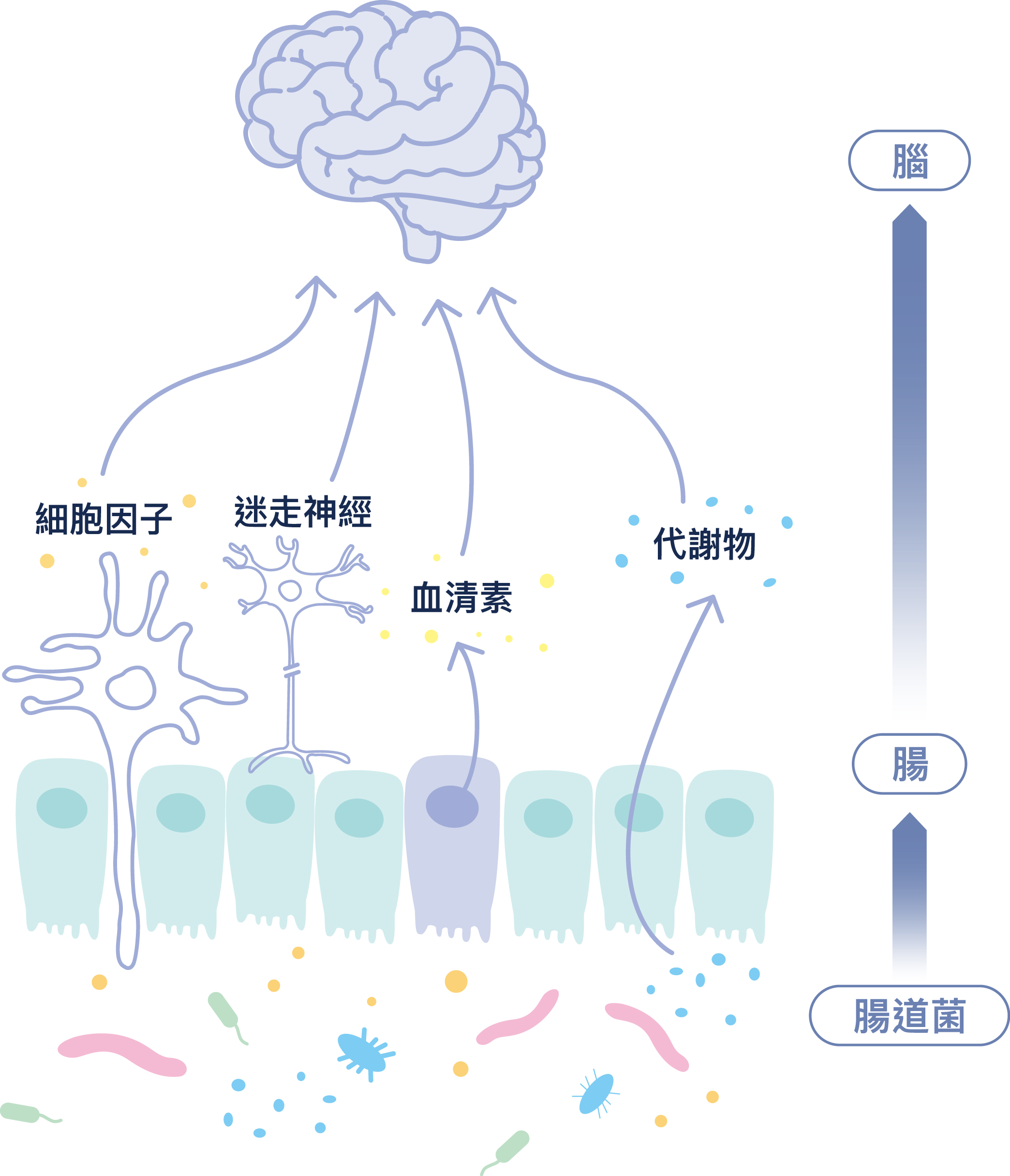 大腦與腸道之間可能存在著雙向通路,包括了迷走神經與化學分子的訊息傳遞途徑,而其中扮演最關鍵角色的是存在於腸道的細菌,可能可以用於幫助保健神經細胞、減緩大腦神經退化。